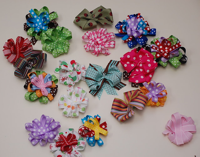 Now, be creative. Combine colors, sizes, and prints of varying ribbon for cute, coordinating, and creative hair bows.