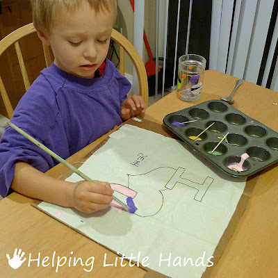 Then Little Brother woke up and REALLY wanted to paint. He's been asking to paint for days and knew that Firecracker and I had been painting during his nap yesterday, so I figured why not...so here he is painting at 5:30 am.