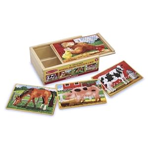 Stop by your local kid's consignment store. You're more likely to find good quality toys with the complete set at these types of stores, but they'll cost a little more than a thrift store. I stopped in a favorite consignment shop the other day to get some snow boots for Seth. I scored big when I found some wooden Melissa and Doug puzzle sets (4 puzzles with 12 pieces each in each) for $4 each and some magnetic wood dress-up dolls for Becca. Becca has one puzzle like this already and they're the perfect difficulty for her. If you're buying for a 3 or 4 year old, these would be a great choice.