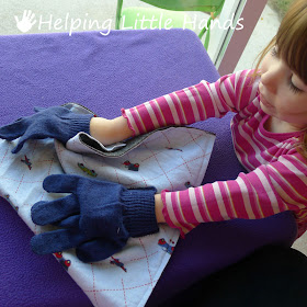 This is just a cheap pair of gloves.  I sewed them on with zigzag stitches at the wrist, so the kids can slide their hands in.